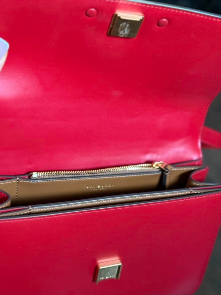 תיק עור אמיתי מבית Tory Burch — במצב חדש לגמרי, צבע אדום עוצמתי ומרשים. נוכחות של סטייל מודרני, אלגנטי ויוקרתי שמוסיפה כוח לכל אאוטפיט.