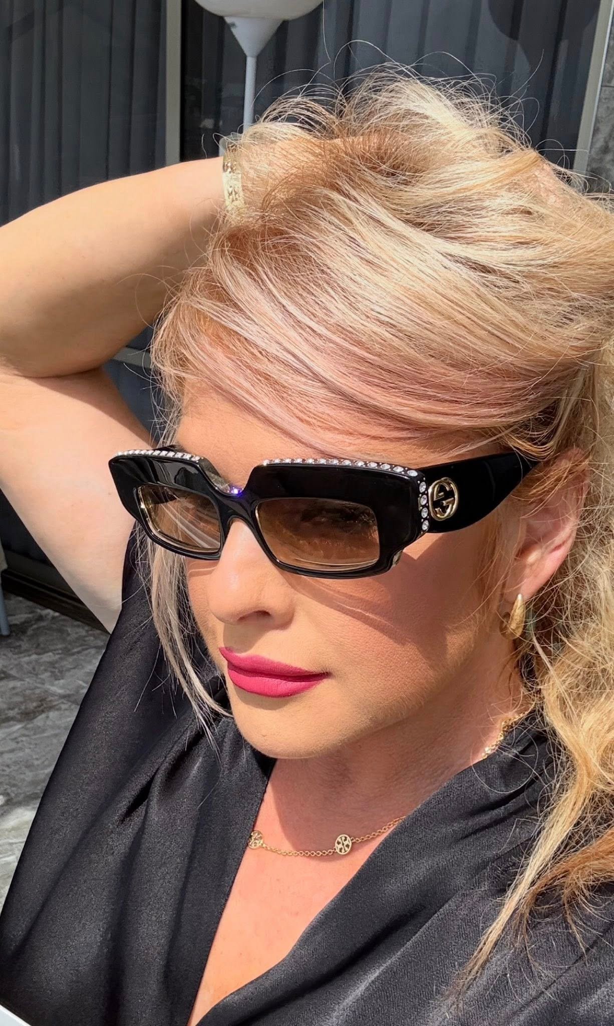 HE: דגם מהדורה מוגבלת של Gucci עם מסגרת מלבנית מודגשת ושורת אבני נוצץ אלגנטית. עדשות גראדיינט נוחות עם הגנת UV. מגיע בסט מקורי מלא — פריט הצהרה מושלם לכל לוק.