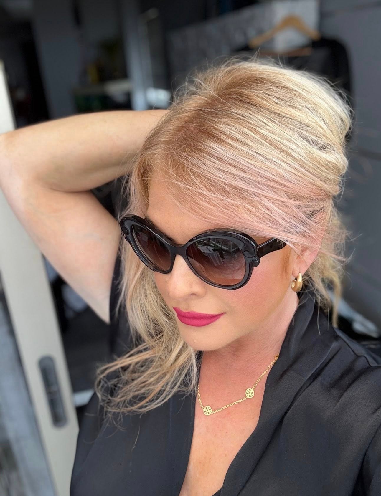 Стилевой совет: носите с тотал-блэк, шёлковой рубашкой или жакетом — графичная оправа красиво подчёркивает черты лица.