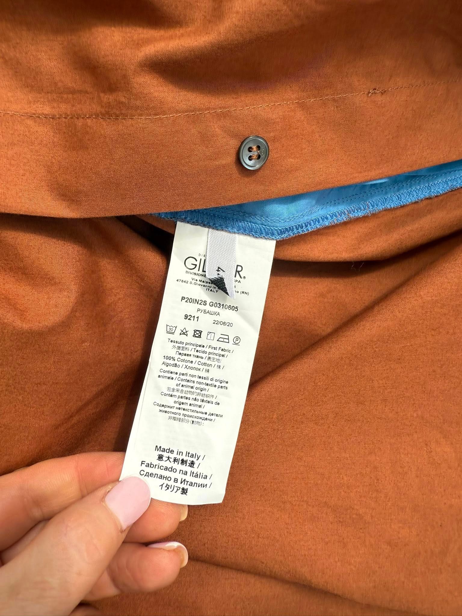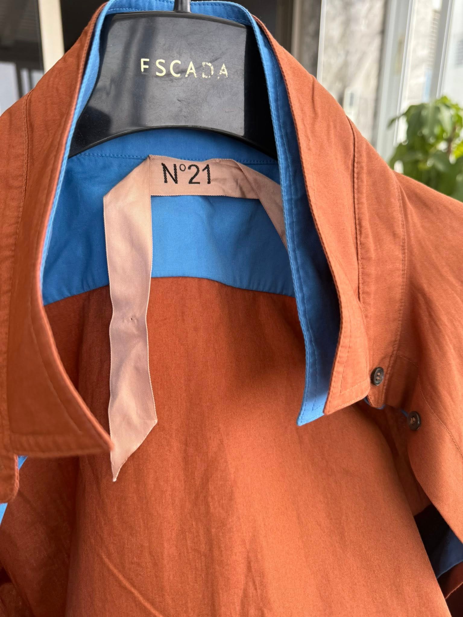 Новая фирменная рубашка №21 — сочетание богатого тёмно-коричневого и насыщенного синего оттенков. Элегантная, мягкая на теле, идеальная по посадке. Универсальна: подходит и под офисный casual, и под модный вечерний образ. Сделано в Италии — премиальное качество в каждой детали.