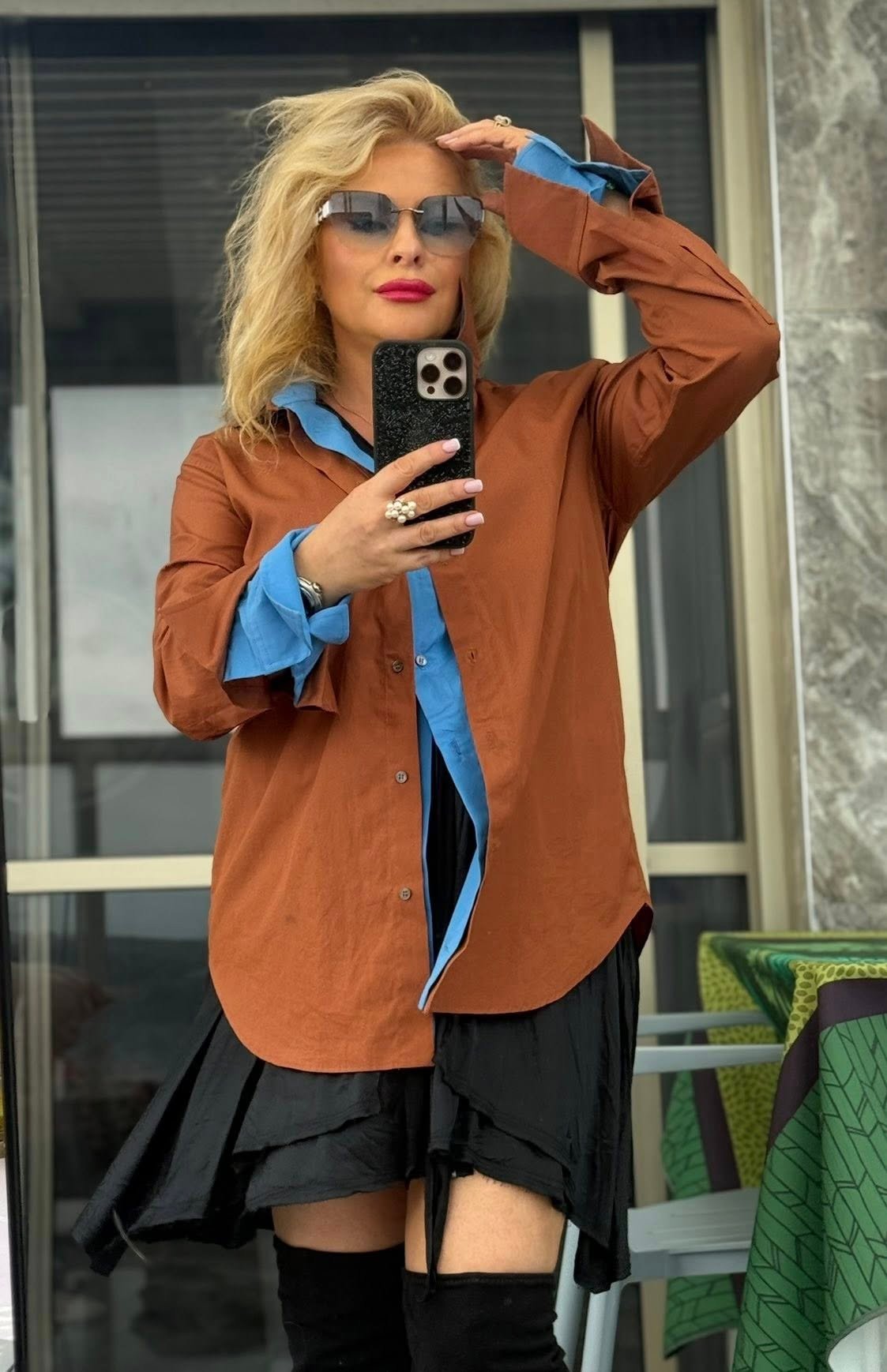 חולצה דו־גוונית בגווני כחול וחום חם — פריט מיוחד שמתאים גם ליום וגם לערב. גזרה מדויקת, בד נעים, וסטייל בלתי מתפשר. Made in Italy — איכות שמרגישים 👌
