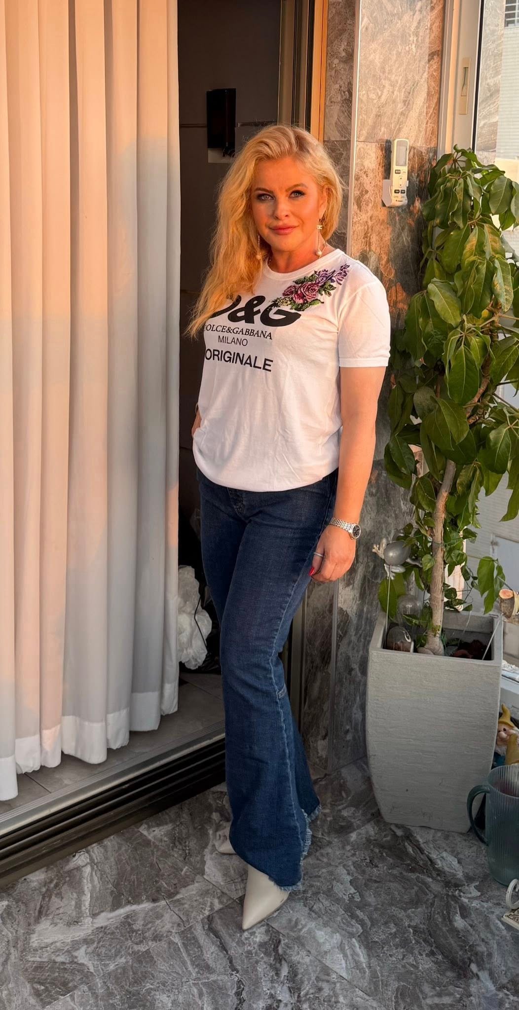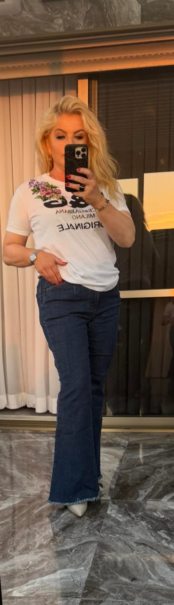 RU: Новая белая футболка Dolce & Gabbana: фирменный логотип и цветочный акцент добавляют образу “люкс-нотку”. Смотрится свежо, дорого и очень стильно — must-have на лето 🤍