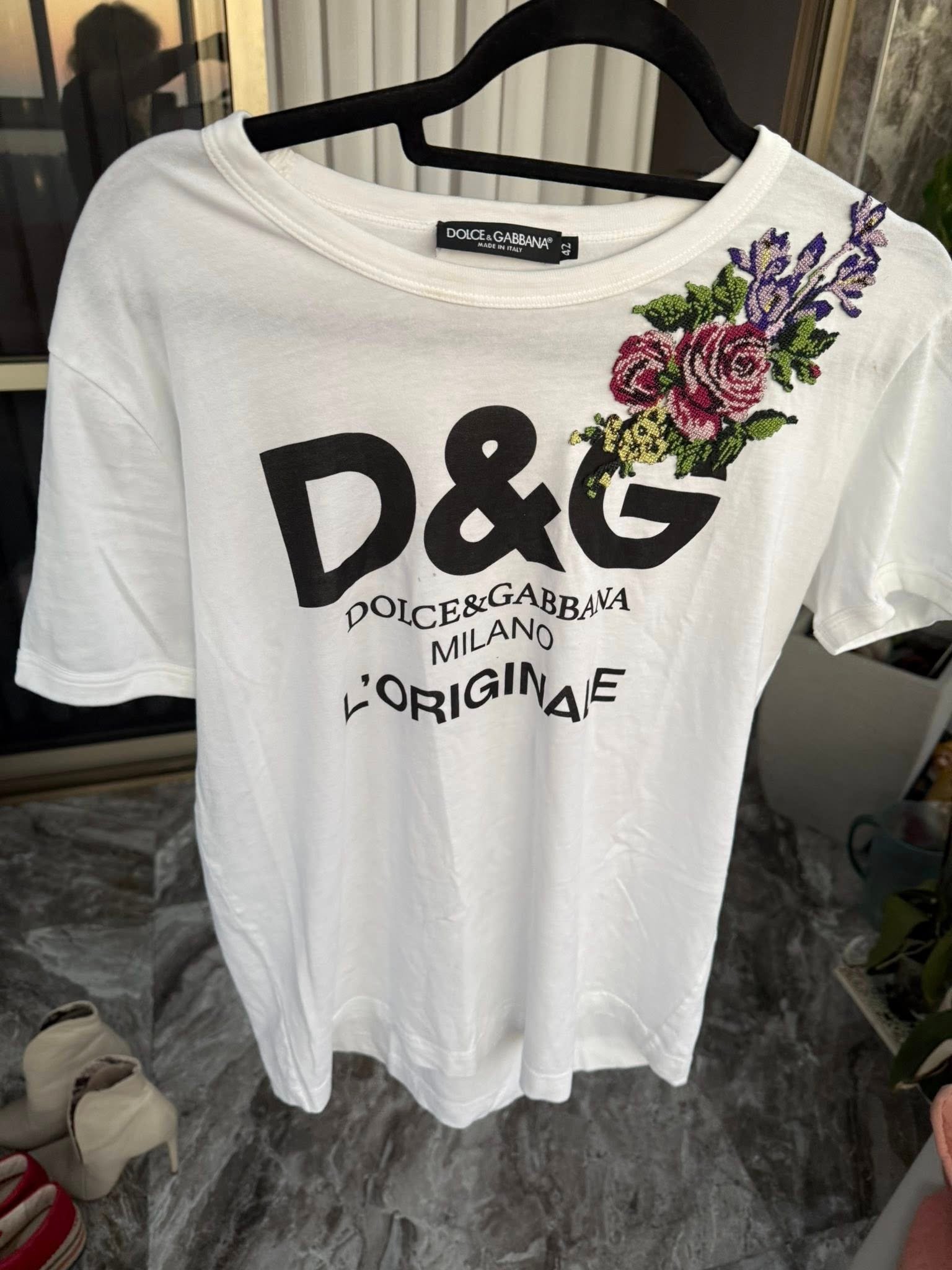 Dolce & Gabbana — Футболка NEW (лого + цветочный акцент) (белый) M — 550 ₪ | De Luxe by Julia Raskin / Dolce & Gabbana — חולצת טי חדשה (לוגו + פרחים) (לבן) M — ₪550 | De Luxe by Julia Raskin