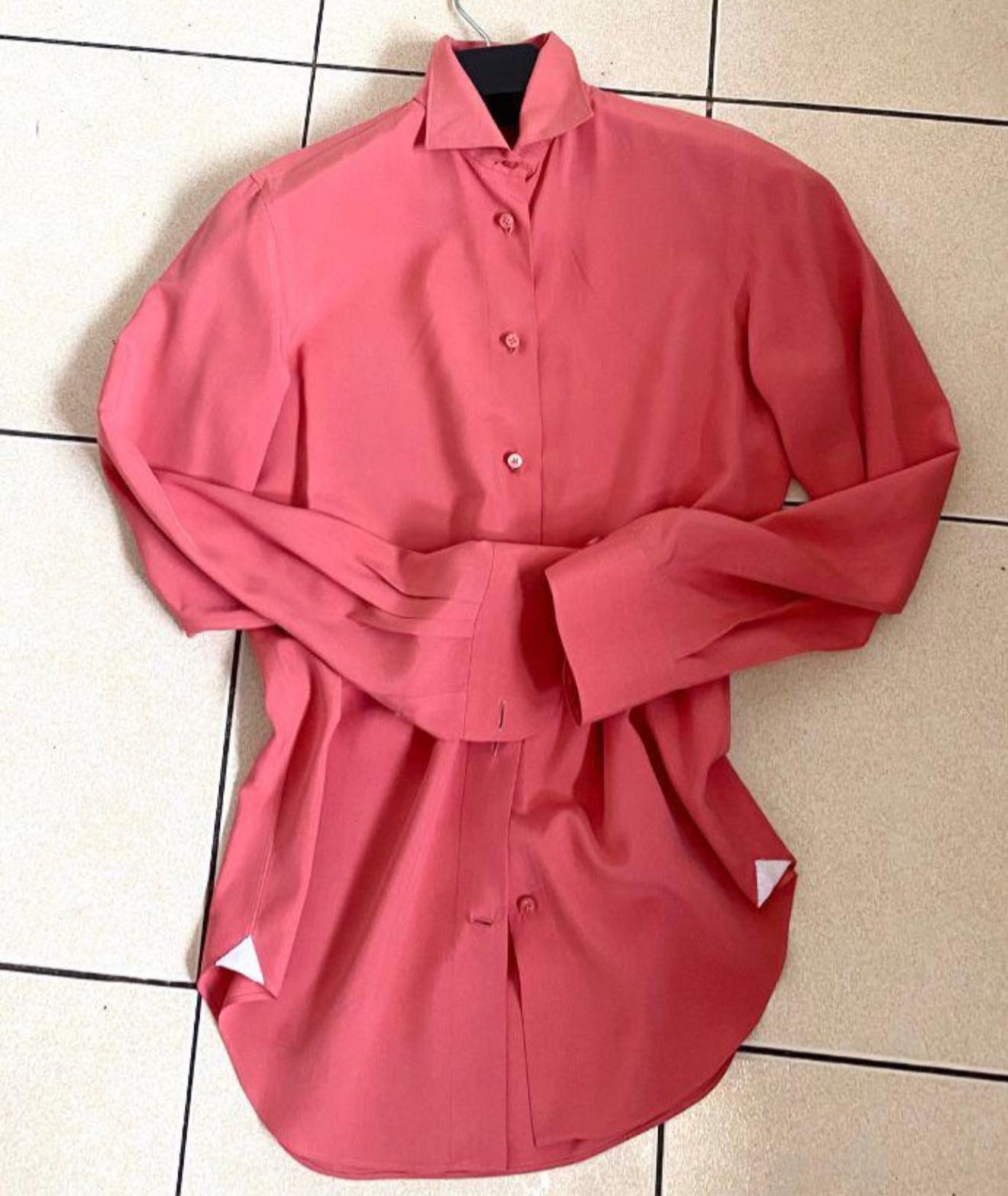 RU: Нежная рубашка Loro Piana в персиковом оттенке — синоним мягкой роскоши. Лаконичный силуэт легко сочетается с шёлковыми брюками и денимом, освежая образ и подчёркивая утончённый вкус.