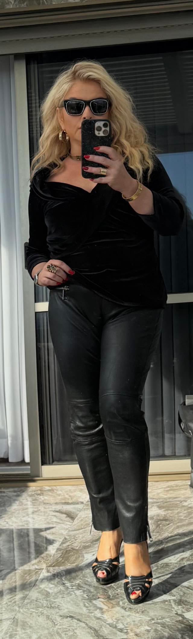 - Образ с чёрной бархатной блузкой: стильный вечерний look