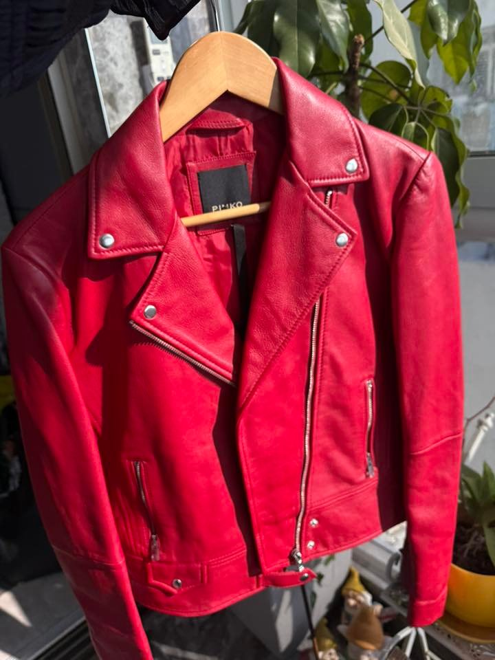 Ярко-красная кожаная косуха PINKO 🔥 | מעיל עור אדום PINKO — 800 ₪
