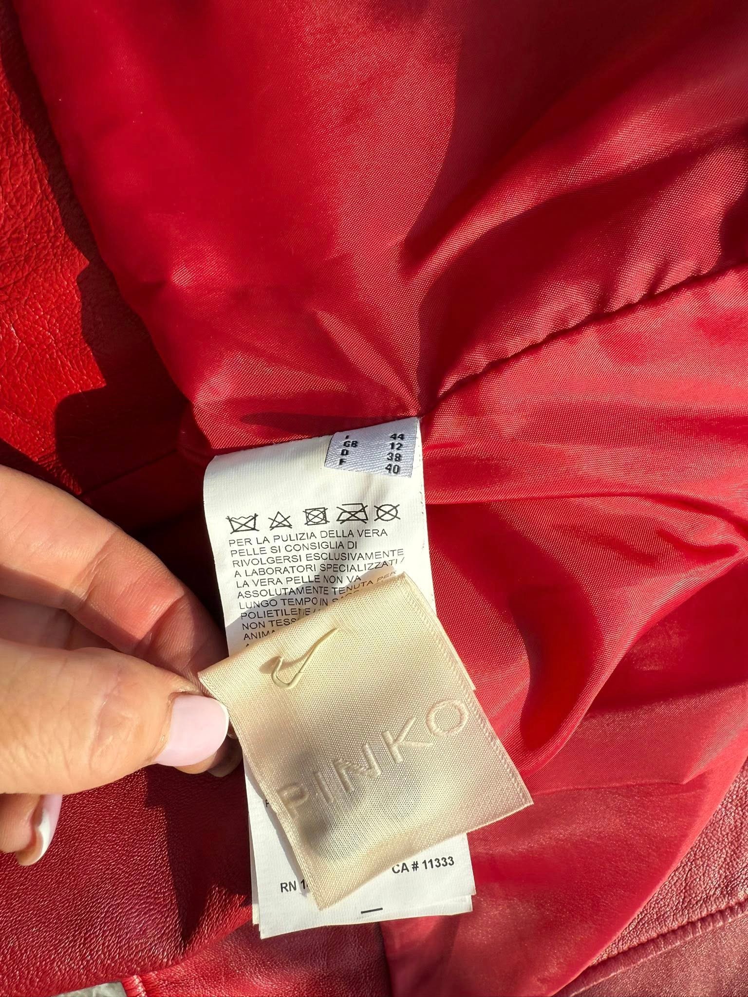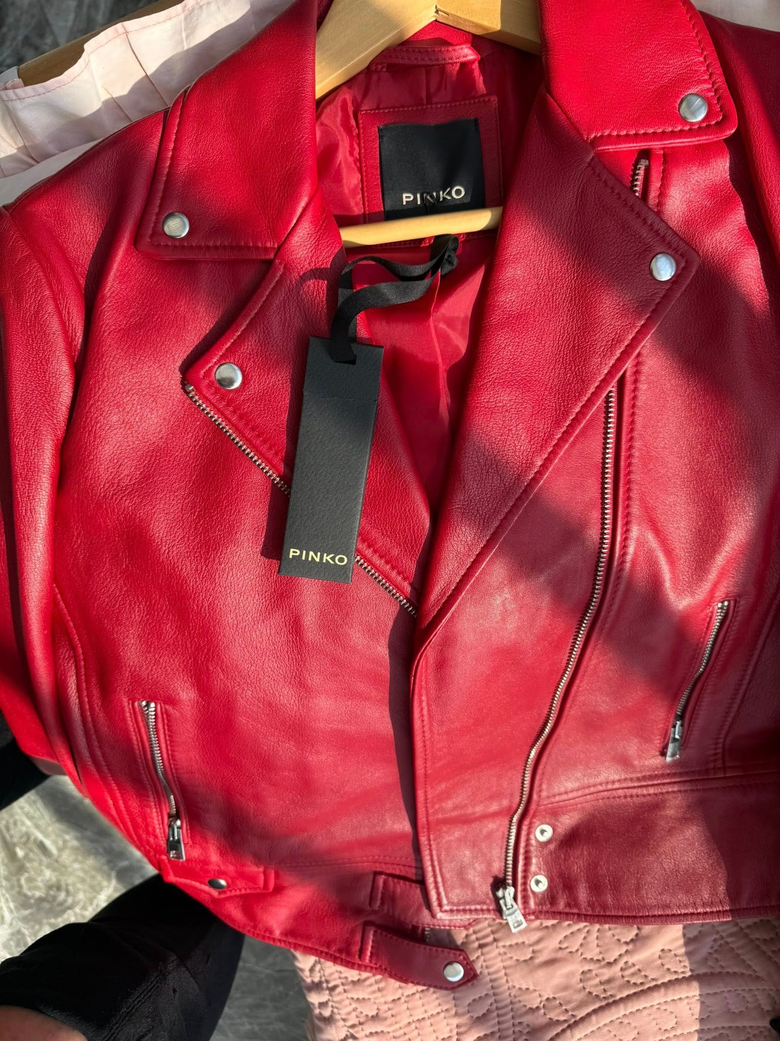 מעיל עור אדום אמיתי של המותג PINKO — חדש לגמרי עם טיקט. הצבע האדום העמוק מעלה כל לוק לרמה גבוהה, מוסיף נוכחות וביטחון. פריט ליגה של הגדולות — מושלם לעונה ולערבים מיוחדים.