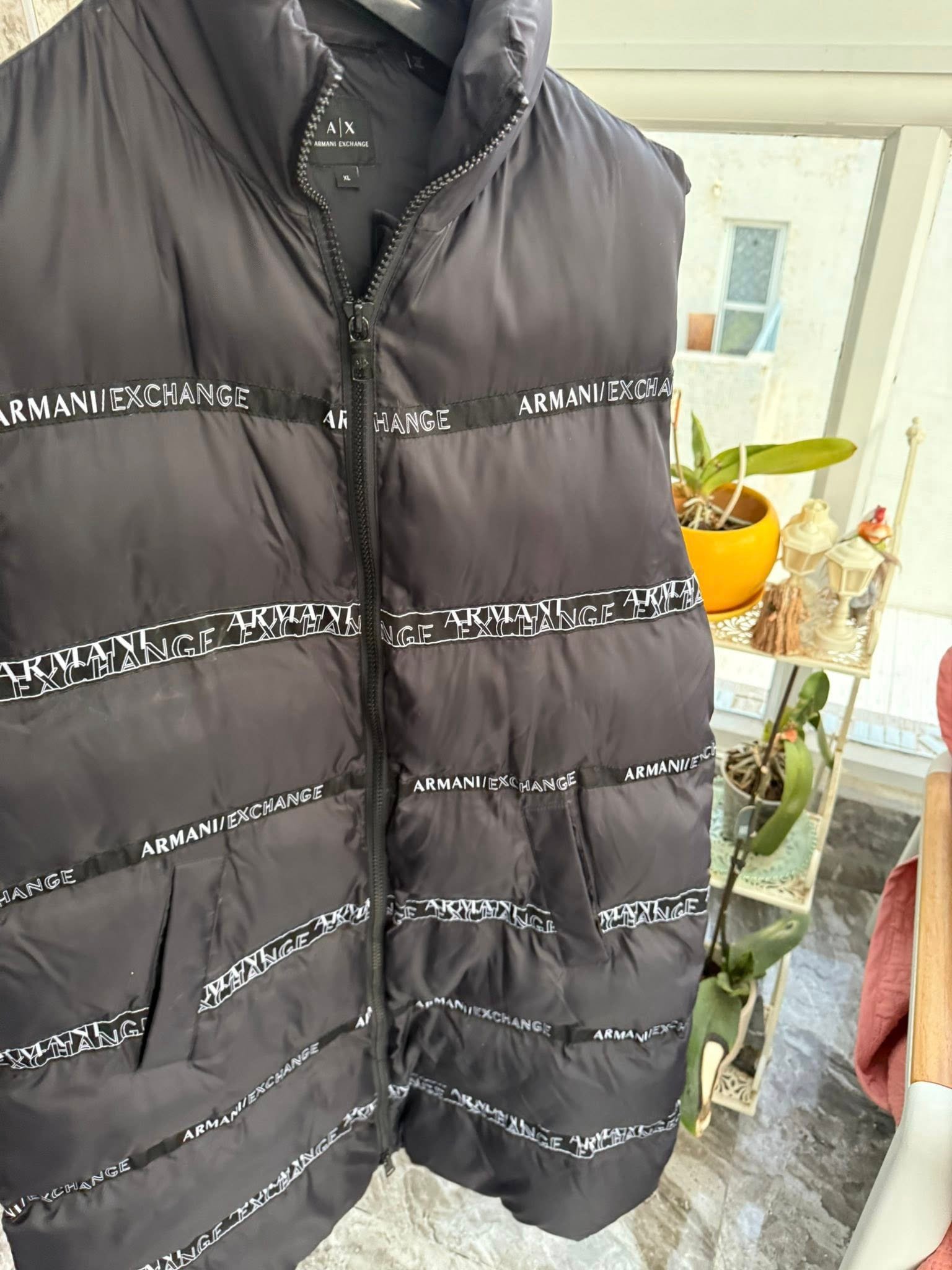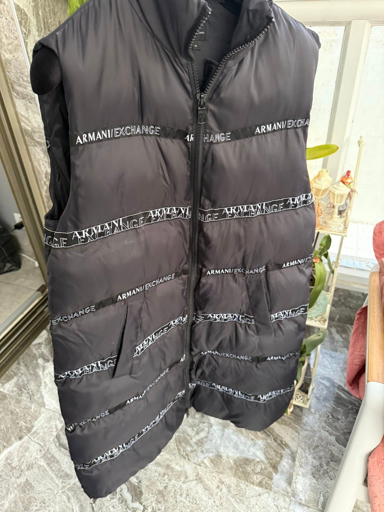 Armani Exchange (A|X) — утеплённый стёганый жилет с логотипами, чёрный, XL — 680 ₪