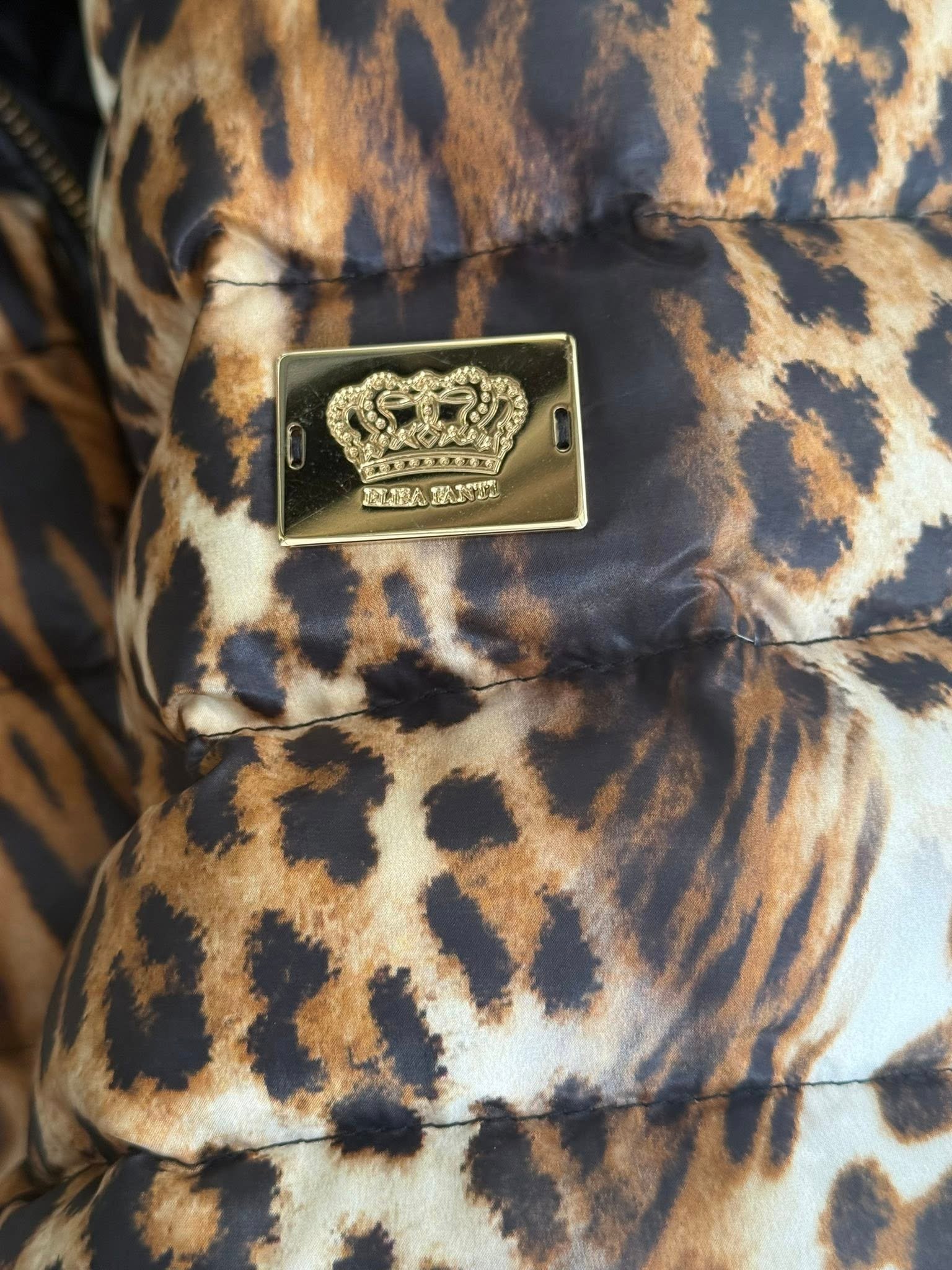 מעיל פוך יוקרתי של Elisa Fanti בעיצוב נמרי אלגנטי. קליל אך חם במיוחד, עם גימור זהוב ותפירה מושלמת. מושלם ליום חורף קר או ליציאה בערב כשאת רוצה להיראות מהממת 💕.