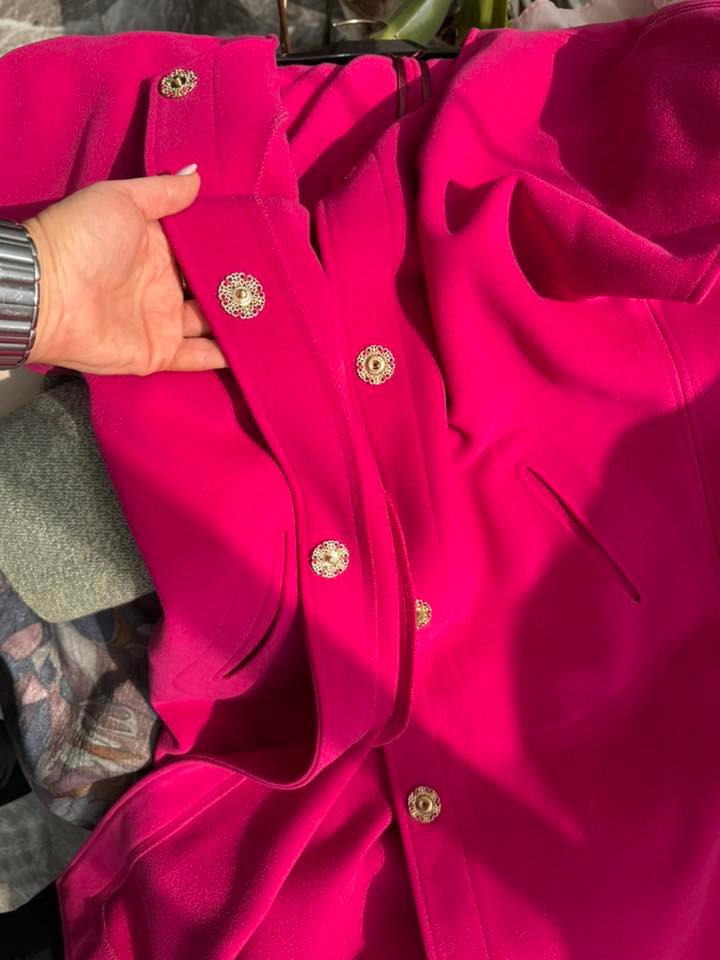 מעיל קליל אך חמים, בגוון פוקסיה מטריף עם כפתורים מוזהבים אלגנטיים. פריט שמקפיץ כל לוק ונותן נוכחות אופנתית ויוקרתית. מידה M — מושלם לעונות מעבר ולערבים אלגנטיים ✨