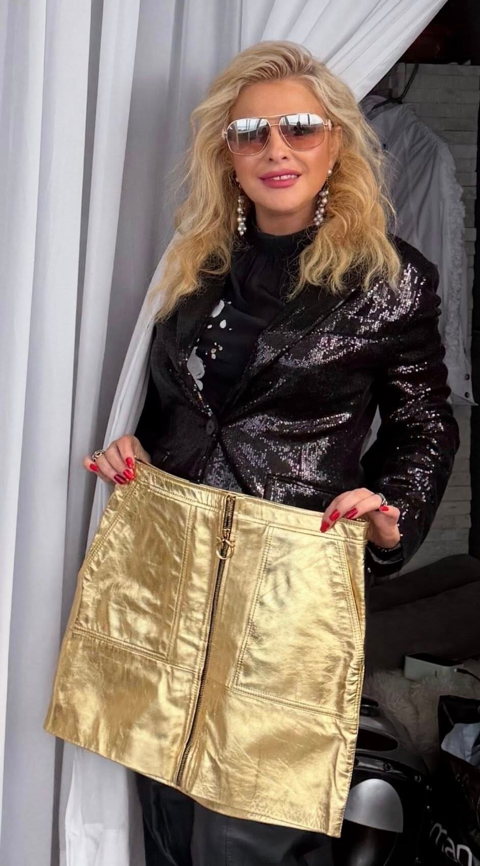Pinko — кожаная юбка мини металлик (золото) S — 600 ₪ | De Luxe by Julia Raskin / Pinko — חצאית עור מיני מטאלית (זהב) S — ₪600 | De Luxe by Julia Raskin