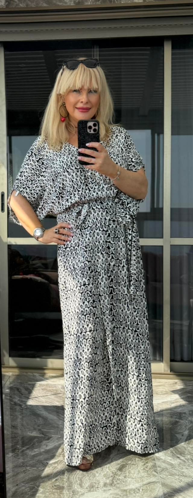 Платье премиального французского бренда GUY LAROCHE выполнено из 100% вискозы — мягкой, струящейся, дышащей. Идеальная длина макси, тонкий пояс на талии, красивый графичный принт и свобода силуэта создают образ, который выглядит дорого, современно и без усилий.