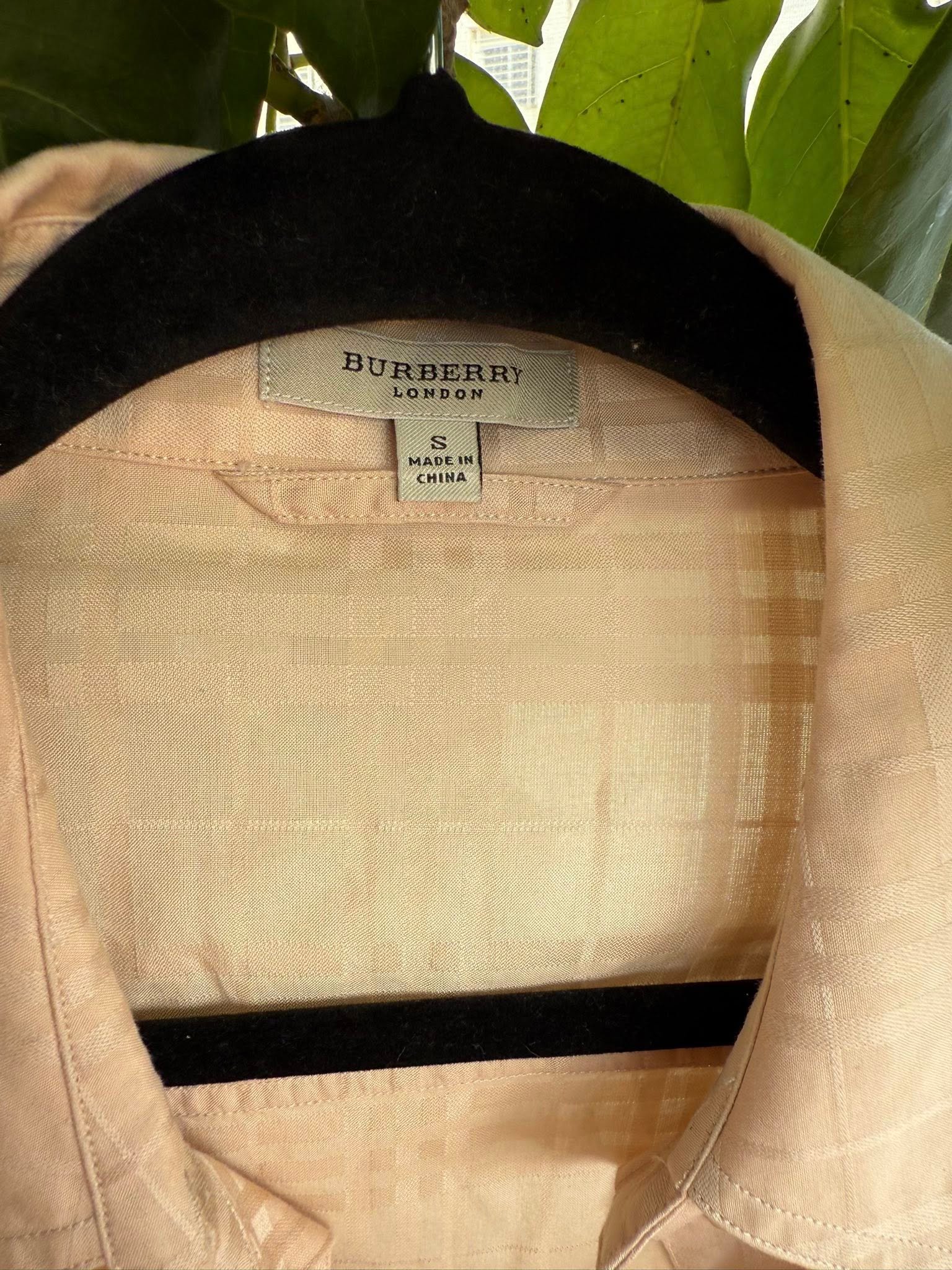 HE: שמלת חולצה אלגנטית של Burberry בגוון ניוד עם משבצת טונאלית עדינה. קו נקי, קשירה במותן ושרוול 3/4 – פריט בסיס שיקי ליום-יום או לחופשה. משתלבת נהדר עם כפכפי עקב, סנדלים ותיק כתף קטן.