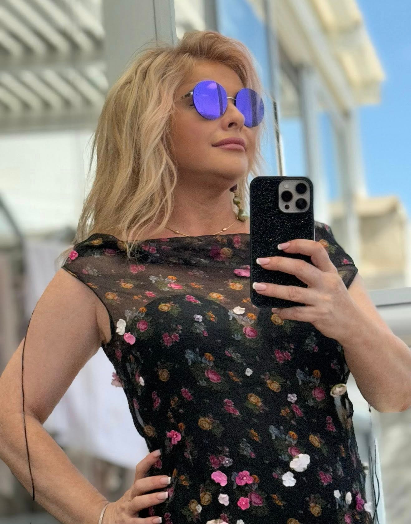 RU: Невесомое платье Dolce & Gabbana из прозрачной сетки с россыпью цветочных аппликаций. Идеально для летних вечеров и праздничных выходов. Носите с комбинацией/базовым платьем-подкладой в тон или контрастом.