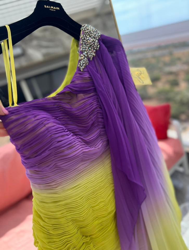HE: שמלת אומברה מרהיבה של Sagué, מעבר מסגול עמוק לליים חי.