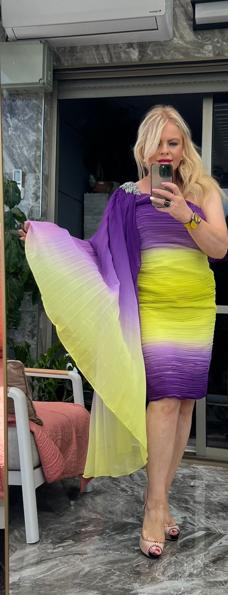 RU: Яркое платье Sagué с эффектом омбре от насыщенного фиолетового до лаймового.