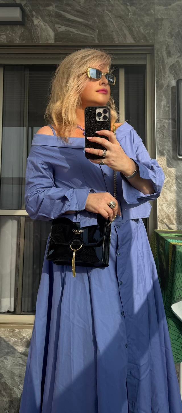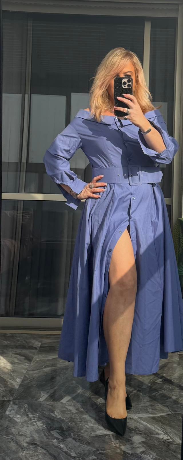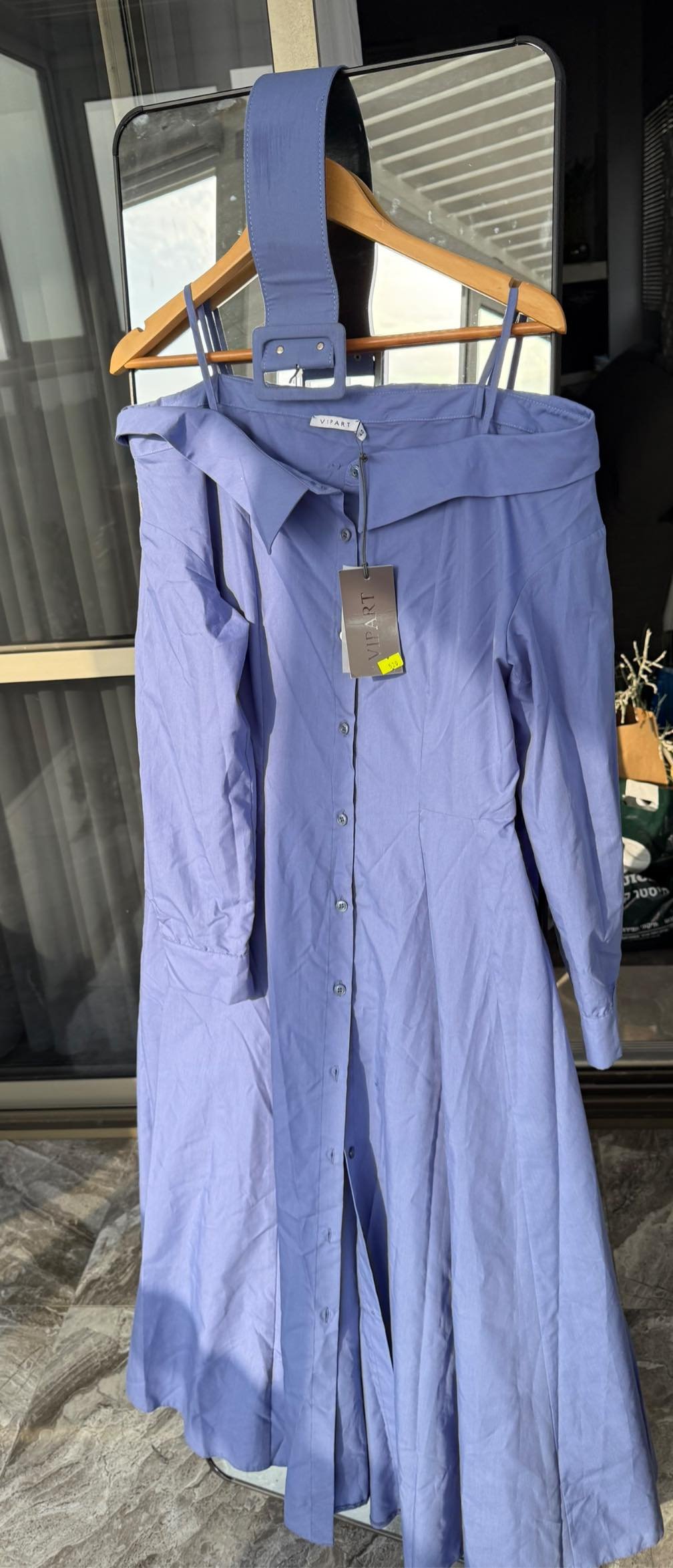 VIPART — голубое платье-рубашка off-shoulder с поясом, размер 40 (M–L) — 350 ₪ | VIPART — שמלת חולצה כתפיים חשופות עם חגורה, מידה 40 (M–L) — 350 ₪ | Julia Raskin Style