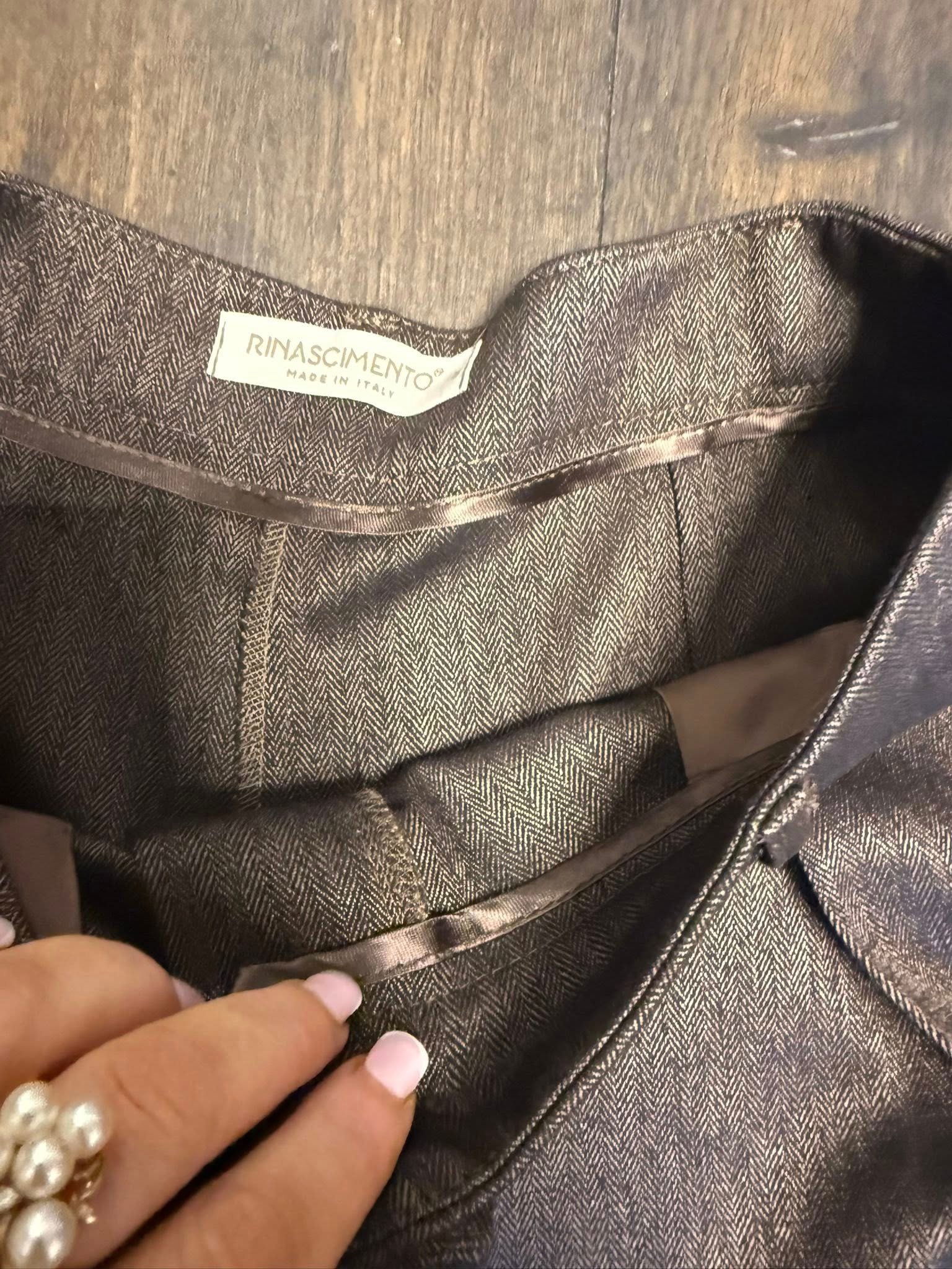 חליפה איטלקית מפוארת של Rinascimento — שילוב של גזרה מושלמת, צבע שוקולד יוקרתי ותפירה איכותית. הגוון המחמיא נראה יוקרתי ומעצב את הסילואט באופן אלגנטי ומוקפד. החליפה חדשה לגמרי — המכנסיים והז׳קט במצב מצוין, עם בטנה איכותית וגימור איטלקי אמיתי.
