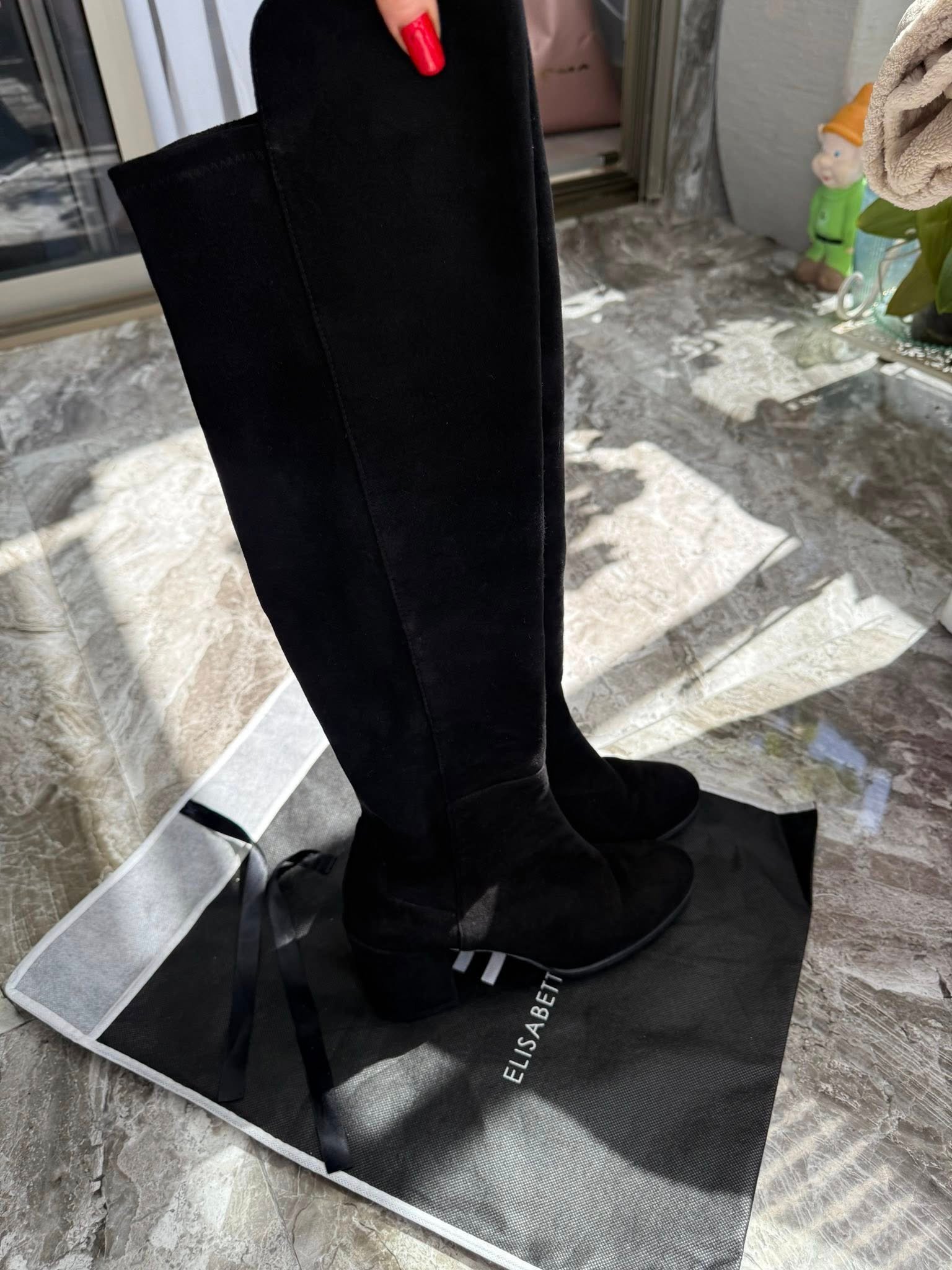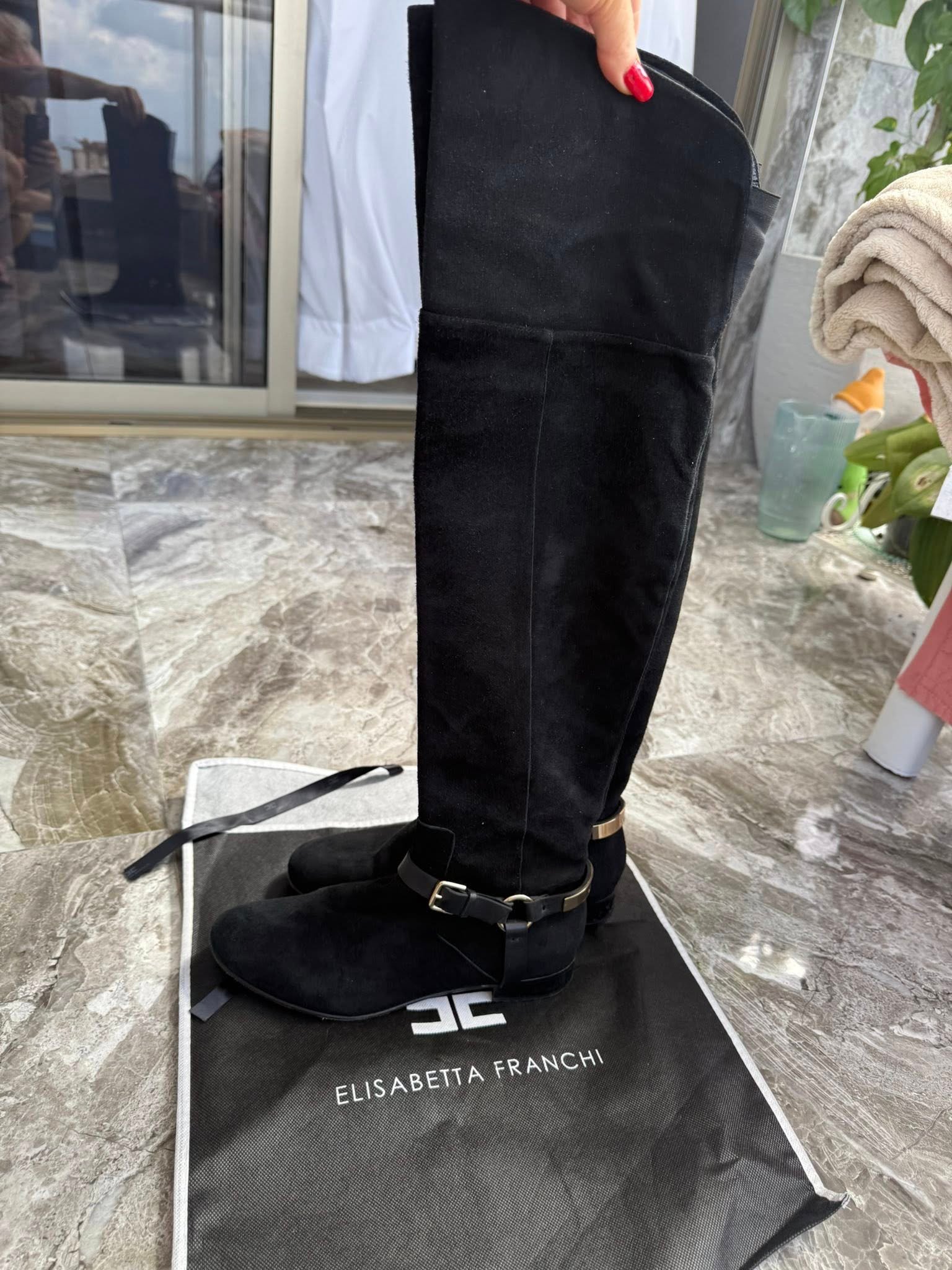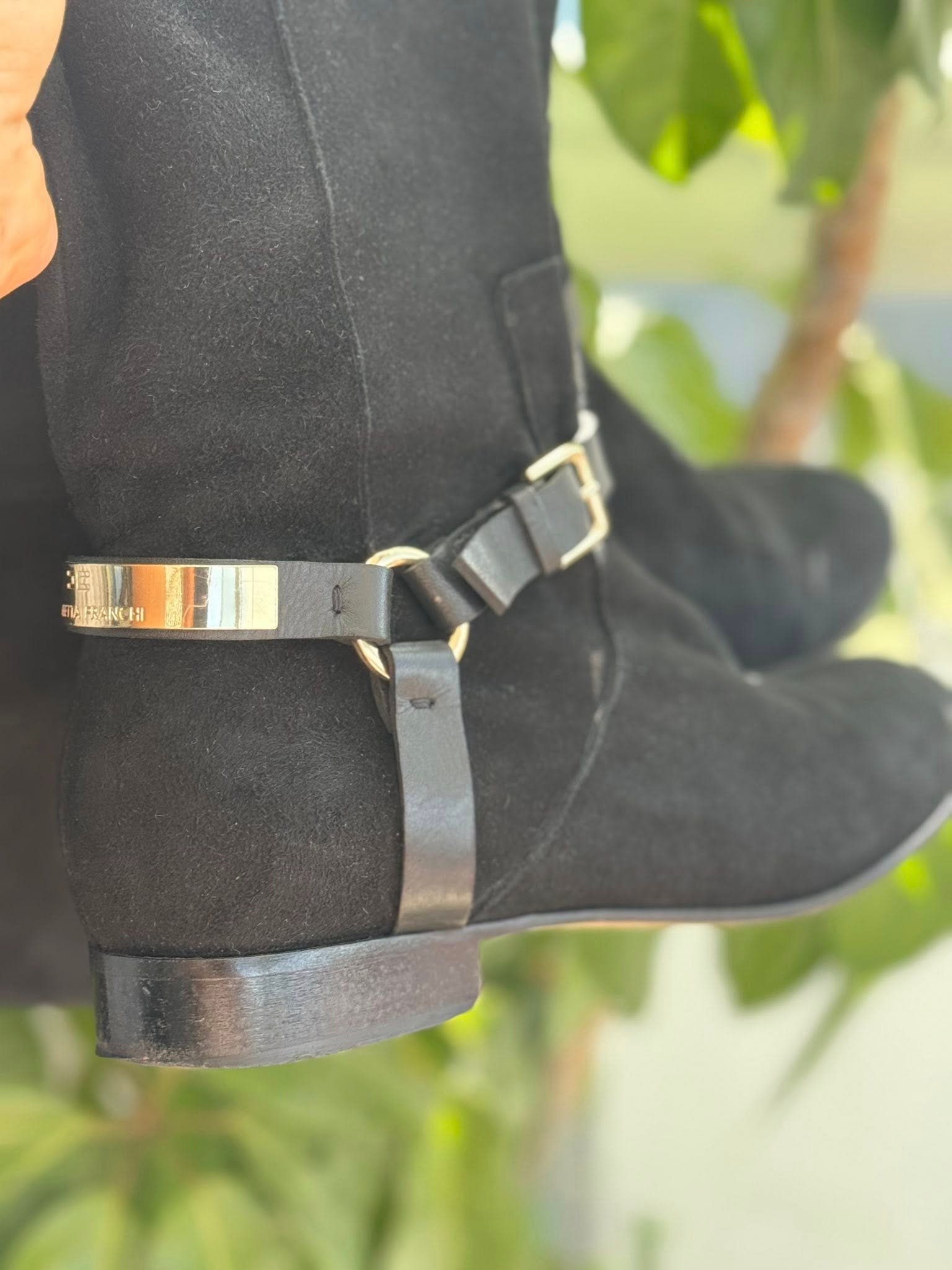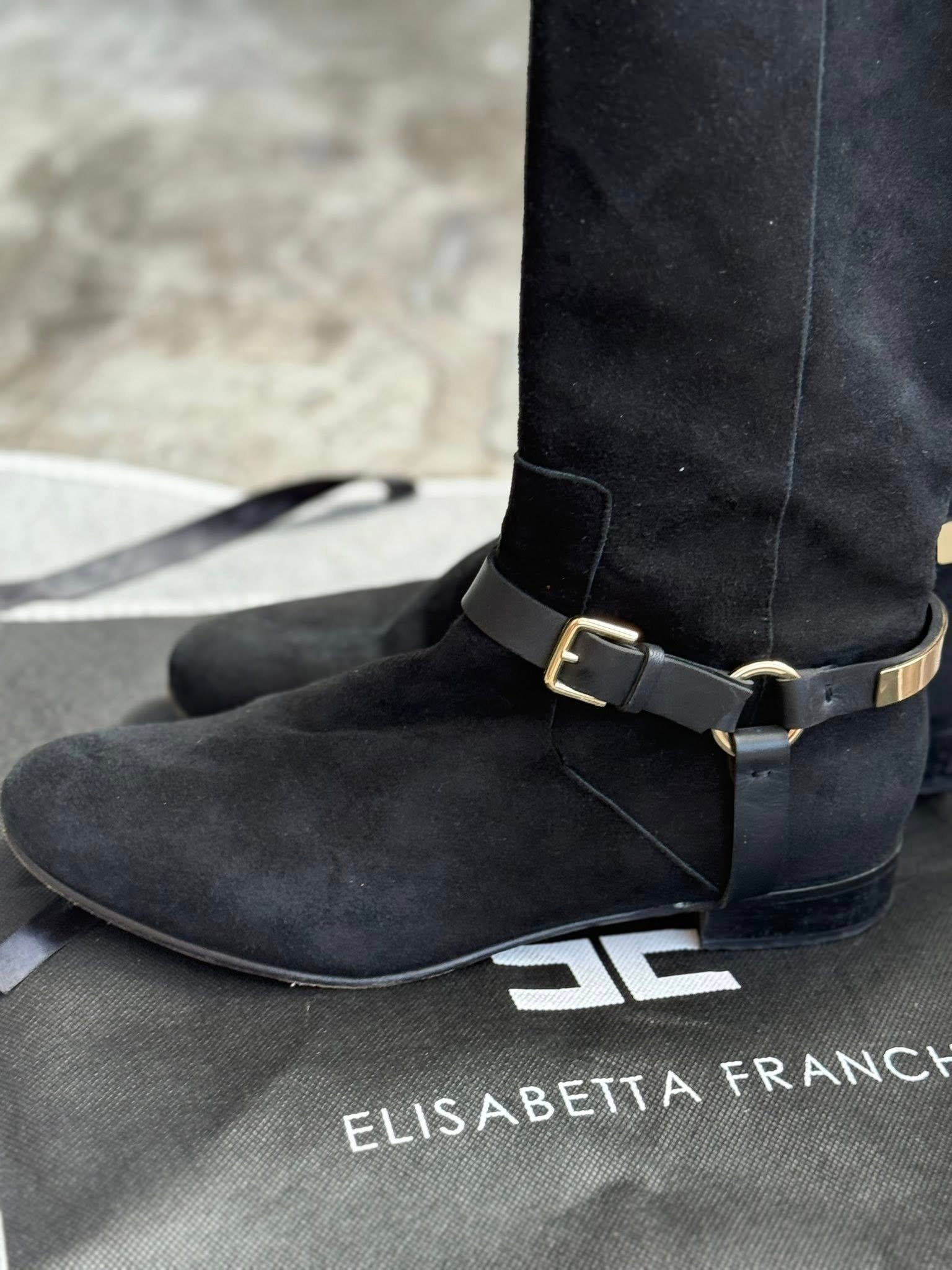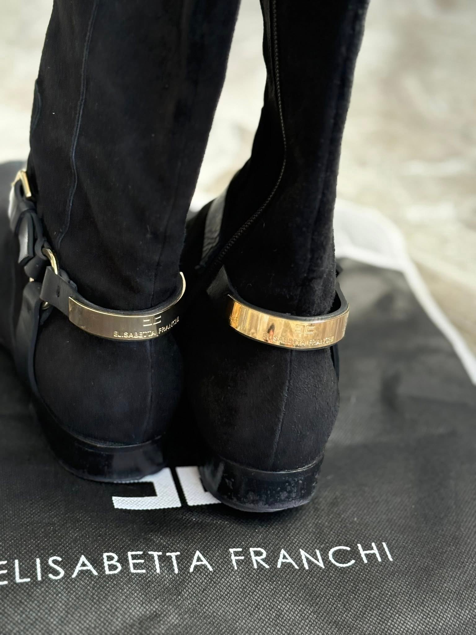 Elisabetta Franchi — черные замшевые сапоги с золотым декором, размер 38 | אליזבטה פרנקי – מגפיים שחורות מעור זמש עם אבזם זהב — 450 ₪