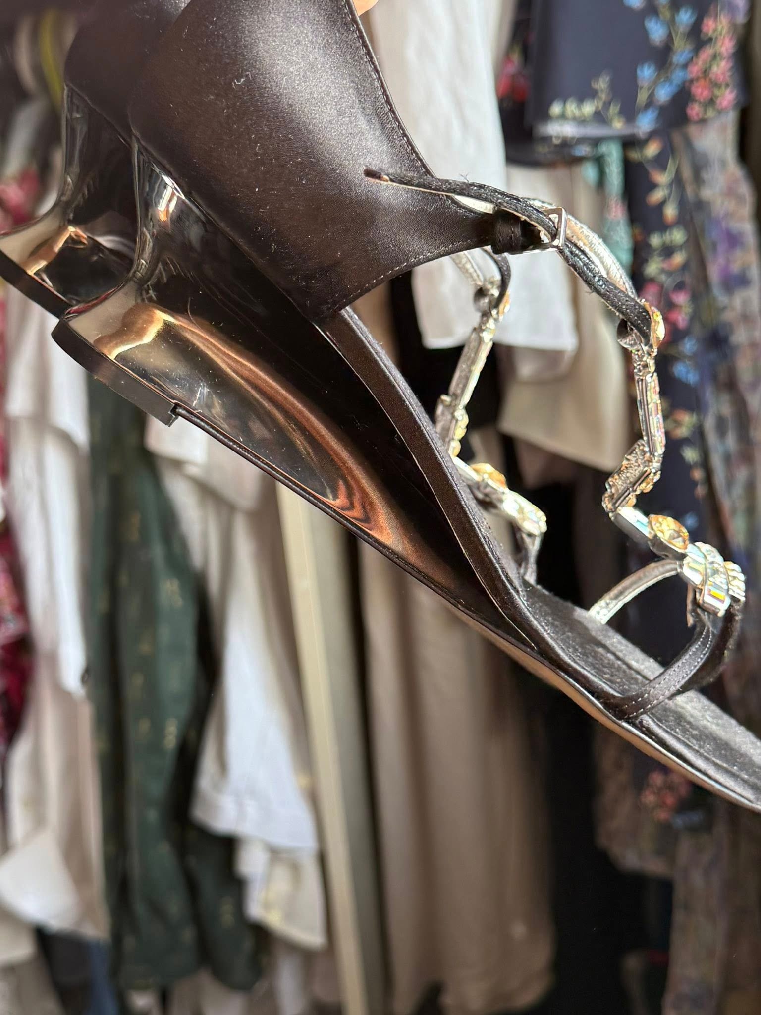 Роскошные сандалии от Giuseppe Zanotti — это воплощение изысканности и блеска. Каждая деталь продумана до совершенства: изящные ремешки, сияющие кристаллы Swarovski и мягкая кожаная подошва создают ощущение эксклюзивности и лёгкости. Созданы в Италии 🇮🇹, они идеально подойдут для особых вечеров, летних событий и торжественных образов. Эта пара — воплощение класса, комфорта и безупречного вкуса 💎.