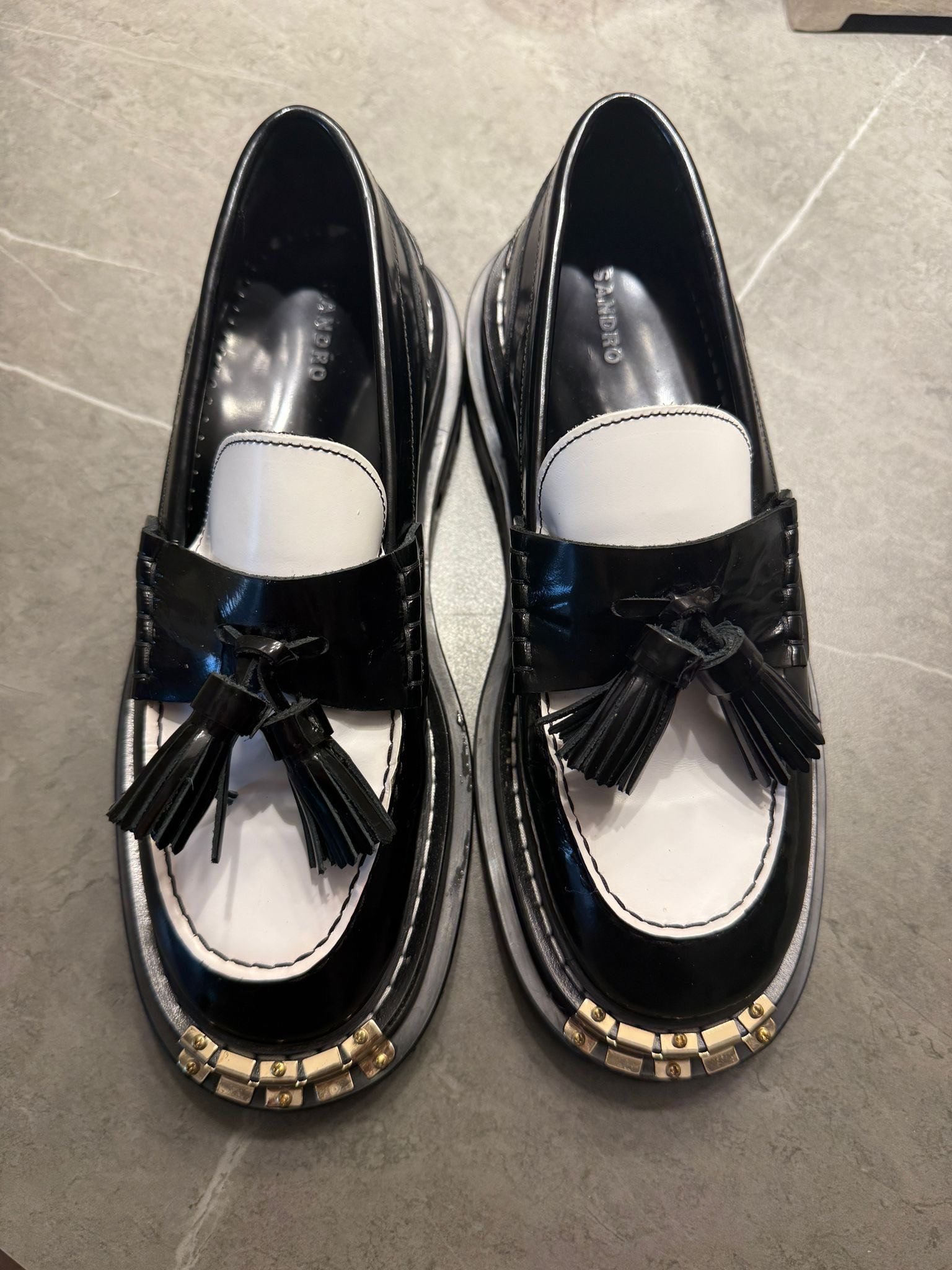 Шикарные лоферы SANDRO Paris — идеальное сочетание классики, качества и современного акцента. Черно-белый контраст делает их универсальными: они подойдут как к строгому офисному костюму, так и к расслабленному casual-луку. Детали ручной работы, мягкая кожа и декоративные кисточки добавляют шарм и характер. Модель, в которую невозможно не влюбиться с первого шага! 👞